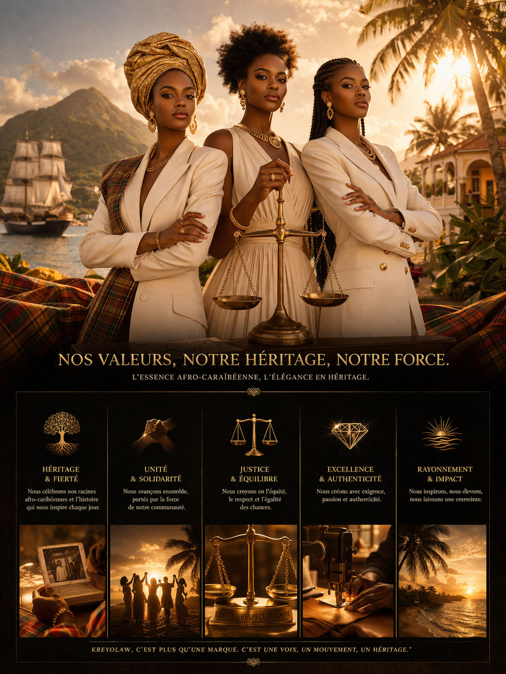 KREYOLAW s’appuie sur des valeurs fortes : l’authenticité, l’élégance, la transmission et l’exigence.